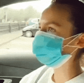 Elle a 2 masques, valsaint : un sur le nez et un sur le menton.
