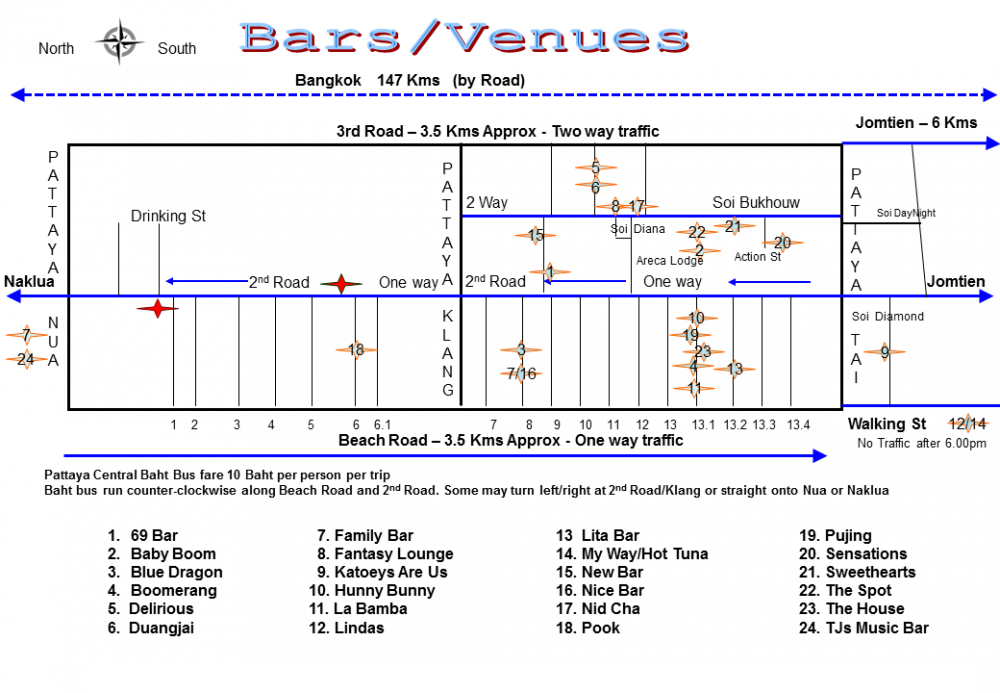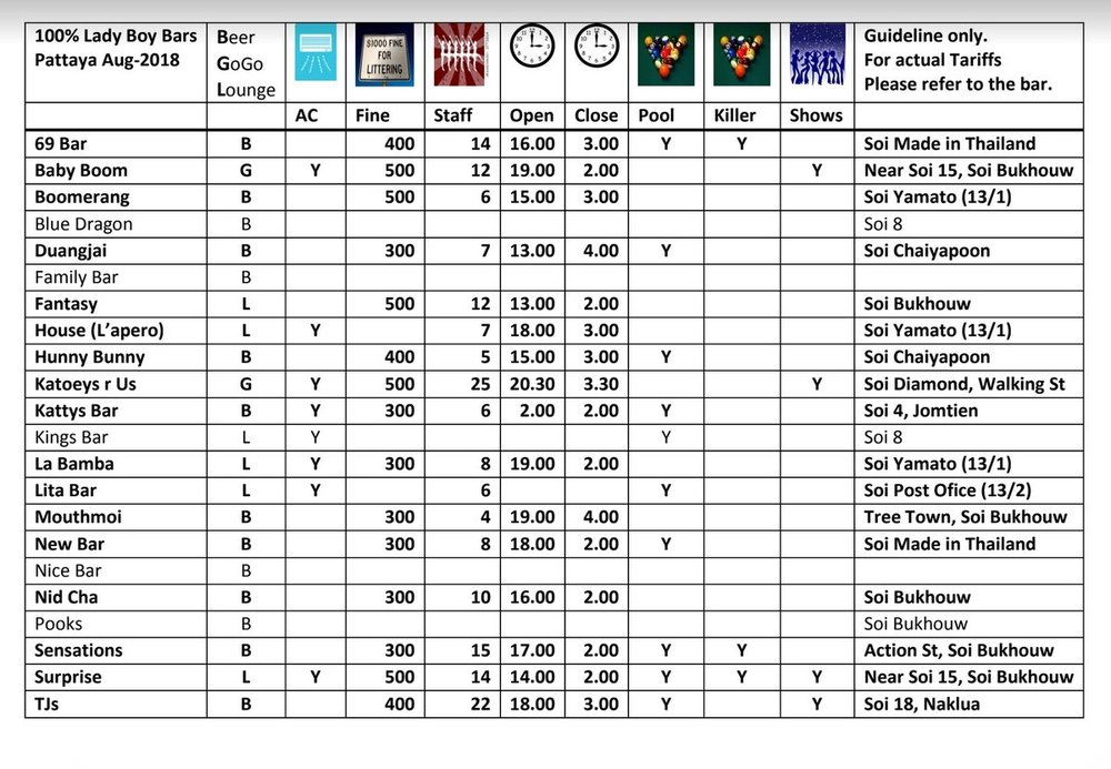 Côté Bars de ladyboys à Pattaya, j'ai déniché un plan qui circule mais qui doit dater d'avant le covid. ça peut toujours aider.