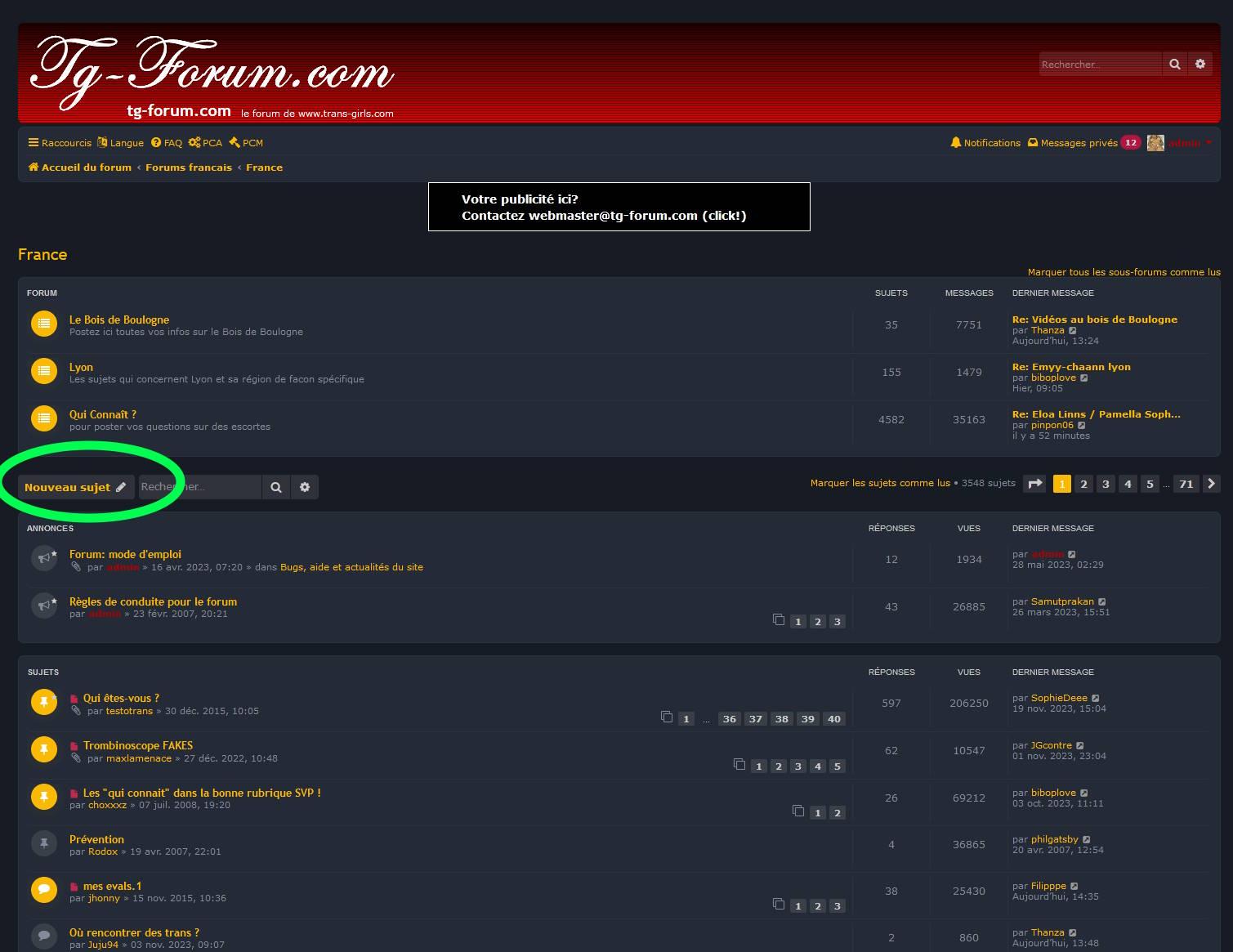 Pour ouvrir un nouveau sujet, allez dans la rubrique souhaitée et utilisez le bouton comme dans cette copie d'écran