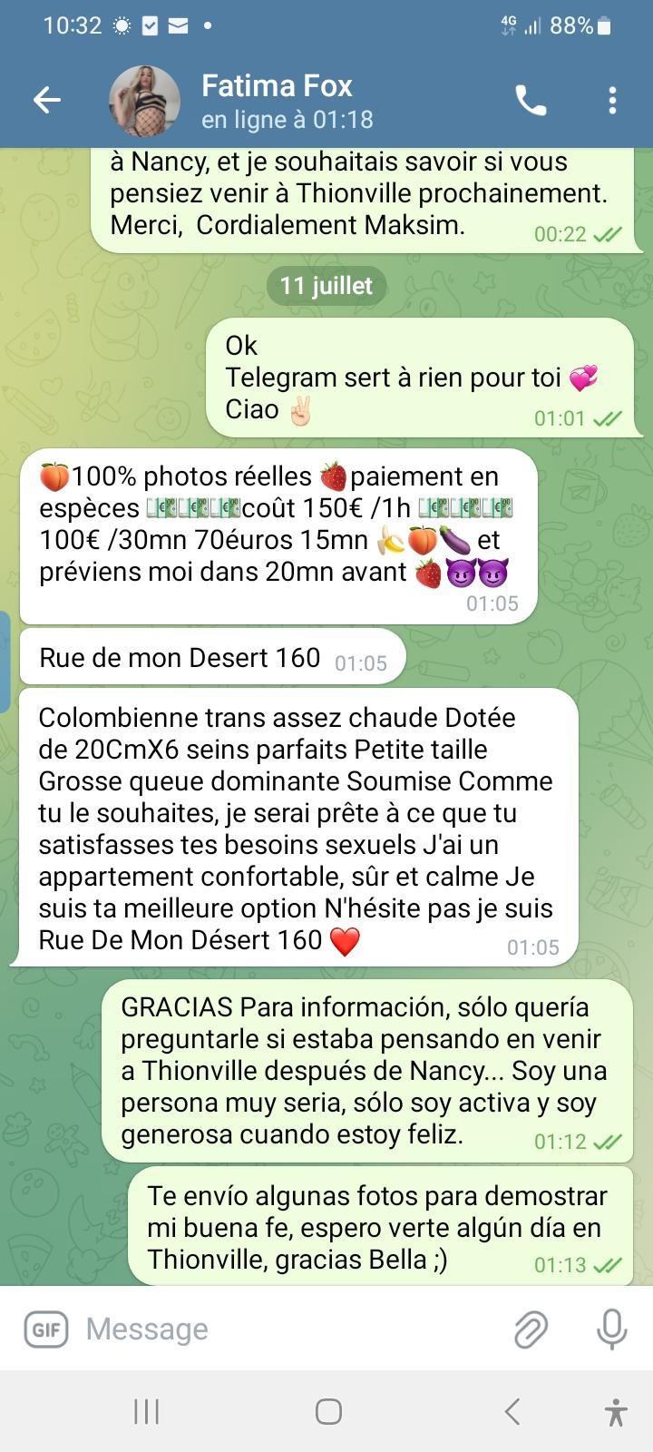 Concernant Fatima Fox, le seul avis de Sexe Model que j'estime fiable émane d'un autre membre de cette plateforme. Nos échanges sur son expérience vécue avec cette personne confirment parfaitement le manque de professionnalisme que j'avais moi-même perçu. Merci à toi LeTesteur31
