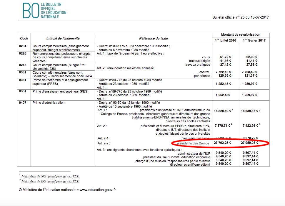 Les derniers arrivés dans le monde des universités par exemple les president des Communauté d'universités et d'établissements (COMUE) : 27 000 euros de prime.
