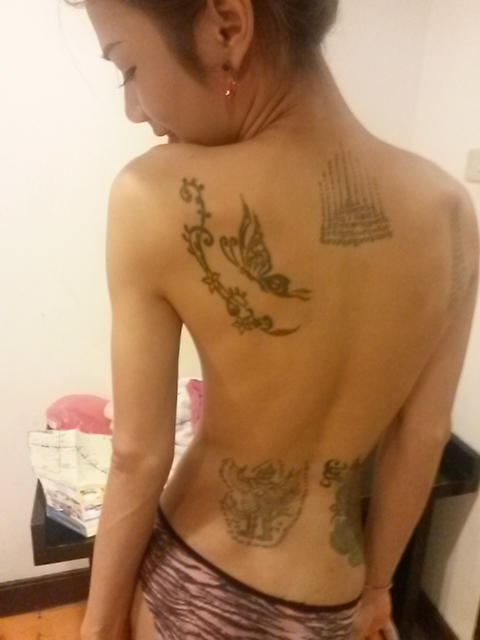 Pas quelques tatouages, par ci, par là, mais beaucoup (sur le dos, le bras, les cuisses, voire le visage, ...)