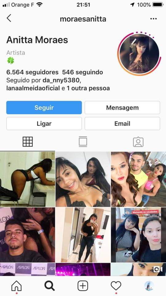 Page désactivée maintenant évidemment. Voici donc les copies écran de son FB et IG.Beijaflor a écrit :Une certaine Anitta Moraes à Paris. Ça suscite pas mal de controverses (surtout positives, ce qui montre bien à quel point elles ont horreur de ça) chez nos amies. Il paraîtrait qu'elle aurait décidé de repartir au Brésil. A suivre.ruben a écrit :OK et du coup qui est cette trans violente qui agresse les clients et que semble dénoncer ton amie Hellen, Jessyka et les autres ?Beijaflor a écrit :Pareil sur la page de Hellen Paula Pocahontas, avec qui je viens de discuter du truc. Au début je croyais que ct le mec qui voulait entuber la trans, mais non en fait c l'inverse elle m'a expliqué. Elle m'a dit qu'au Brésil elle serait déjà dans la boîte (caixão = cercueil^^).
