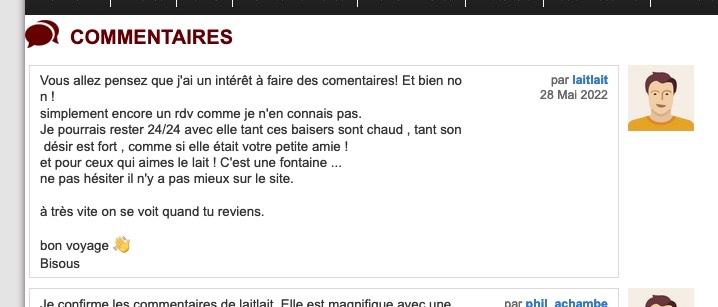 je repère le commentaire daté du 28 mai 2022, je clique sur le nom de l'escorte