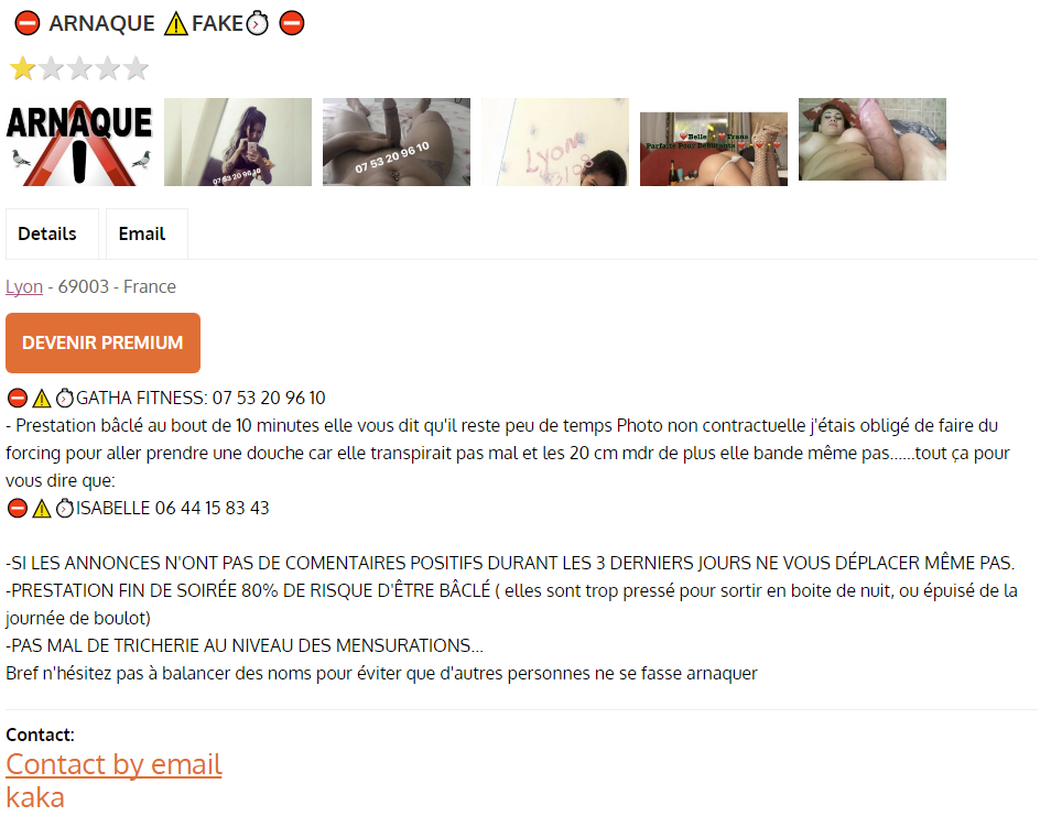 Dénoncée comme arnaque sur escorts69