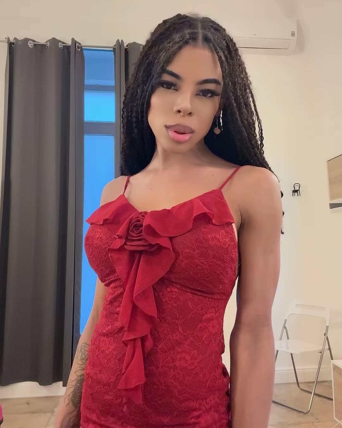 Elle a du charme et son côté tigresse est excitant, sur les photos ça me donnait pas envie, je voulais juste voir sa bite. Elle a effectivement une belle queue. Après les déboires sur le tarif on a commencé à se chauffer, d'abord une douche bien sûr, de son côté hygiènne très bonne. Elle bande bien mais pas tjrs, on a enchaîné sur un 69 mais je me suis un peu fait chier car elle est paresseuse, elle attend quoi. Je pense qu'elle doit être active et comme je le suis aussi elle a peut-être pas enclenchée la seconde.