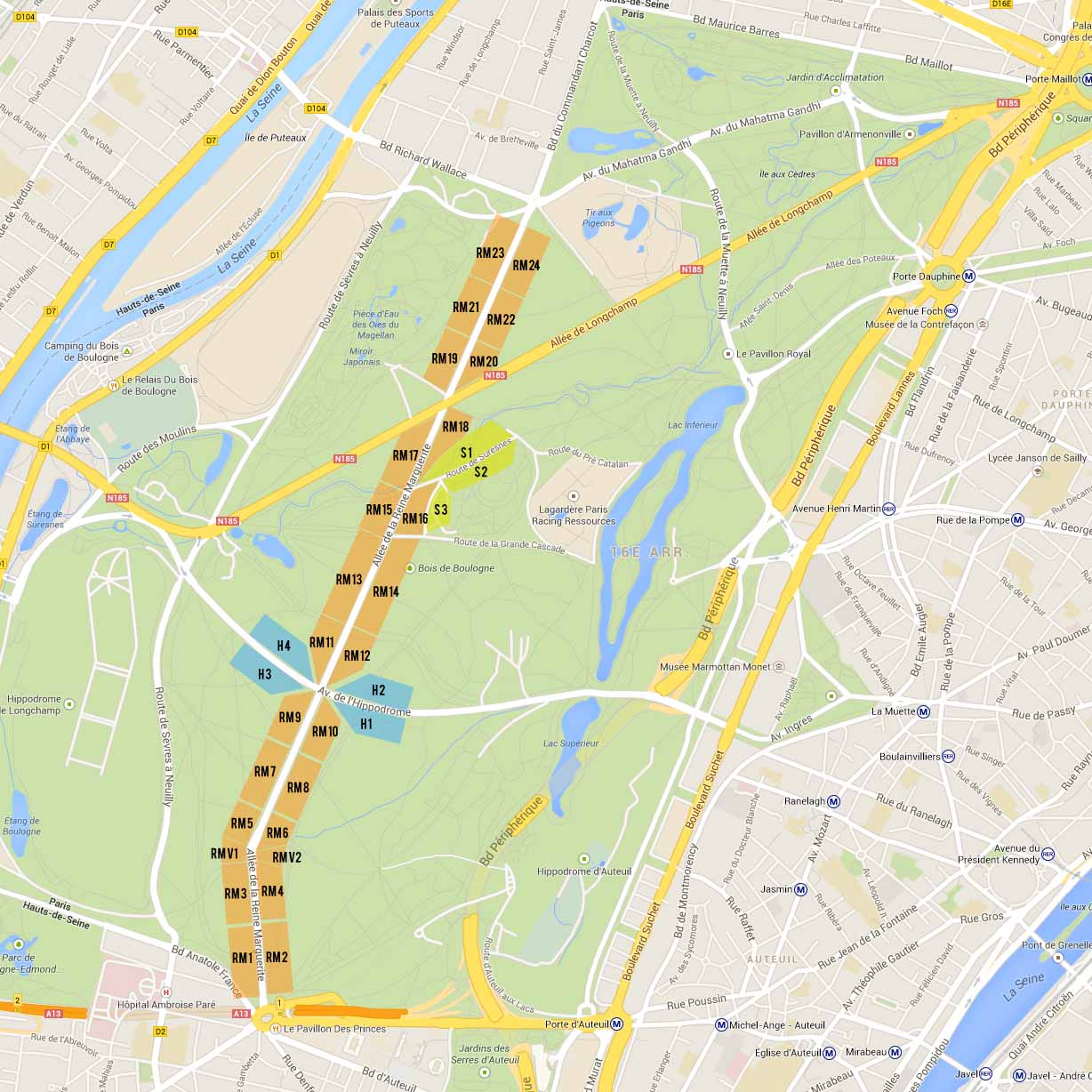du rond point du pavillon royal jusqu'au rond point de la porte dauphine. (pour le coup, je crois que ce sont des marcheur. (je n'est pas vérifier