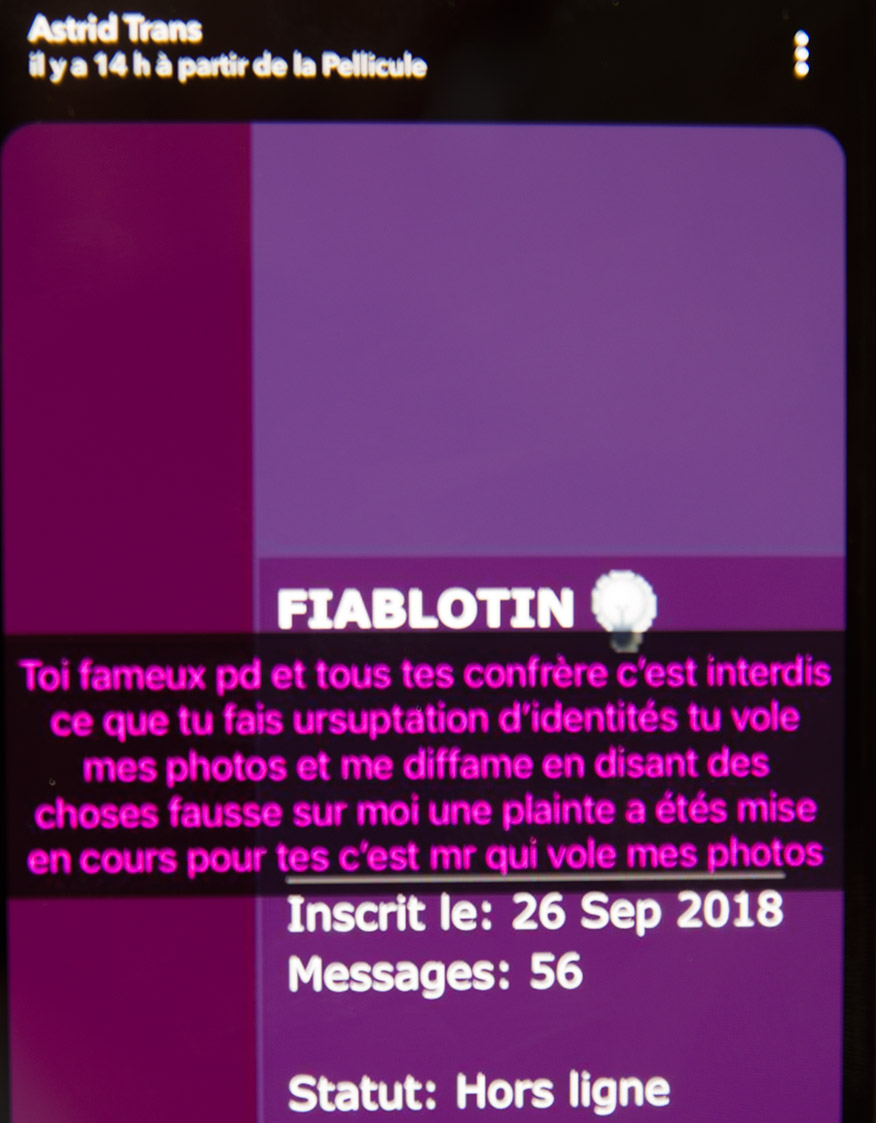 Au final, elle m’avais retrouvé sur fb grâce au numéro de tel, et m’avais rappeler en privé en me disant qu’elle allait envoyer un message à mes amis fb pour leur dire que je payais des escortes trans...