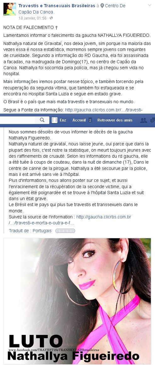 oui encore un (ou une)qui nous prend pour des idiots, le soi disant karim qui s'inscrit deux jours avant sous le pseudo nandibrasil et qui écrit un seul message, tout ça pour encenser nathallya, bien sur on y croit tousvoxxer75 a écrit :Ah... surprenant.nandibrasil a écrit :.c ete ma premiere rencontre avec une trans. Une peau toujours aussi douce.