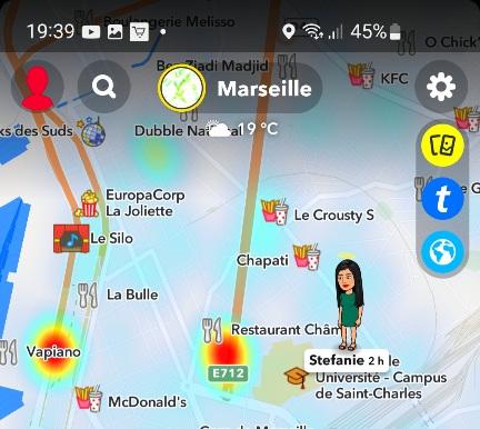 Je voit sa localisation sur snapchat quatier des Catalans .