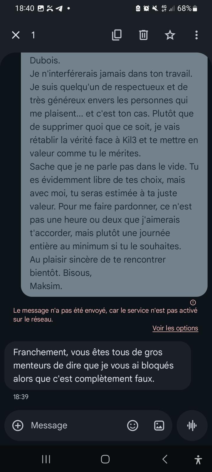 Quant à Kil3, client souillon et mécontent, tu as tenté de la discréditer après t'être comporté comme un goujat imbuvable. Elle t'a simplement traité comme tu le méritais. Tes mensonges ne prennent pas ici. Nous sommes des dizaines ici qui irons la voir.