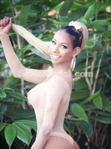 la peau douce et bronzée ,elle sent bon et aime les caresses